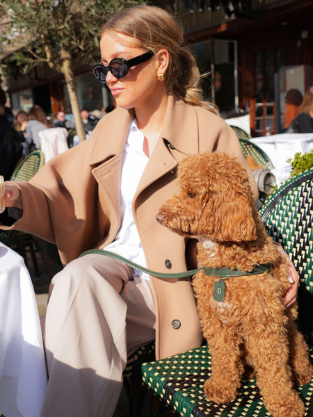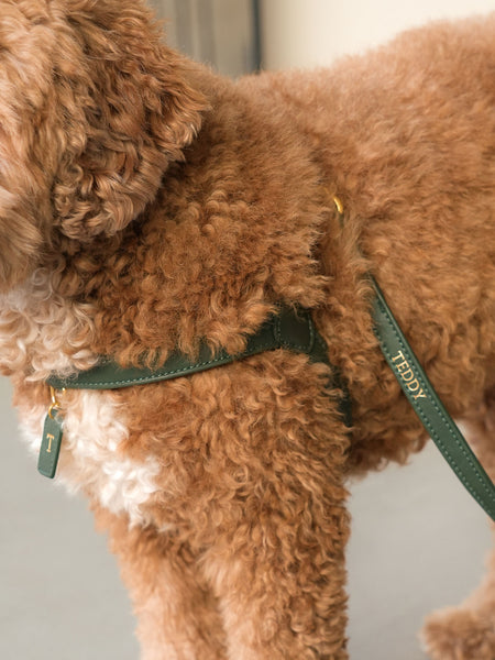 The leather dog harnesses are available in various colours and sizes. Have you, like us, fallen in love with this harness? Then complete the set with the matching leash, poop bag holder, and AirTag holder (AirTag not included).