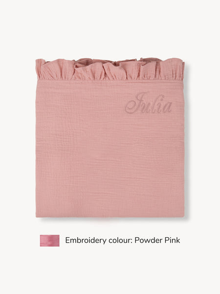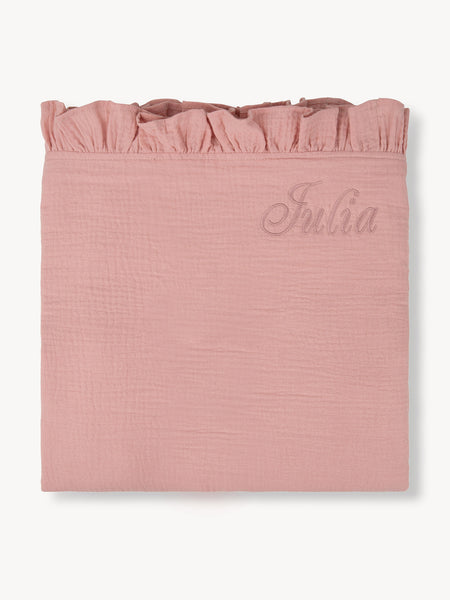 Besides being a real eye-catcher, the ruffle hydrophilic cloth is also the answer to everything! As an extra blanket in the stroller, for over your shoulder to catch little burps or as a towel after a warm bath. And how nice is this personalised hydrophilic ruffle cloth made of lovely soft cotton: Ideal for your newborn baby. Make it even more personal by having it personalised with the most beautiful embroidery thread.