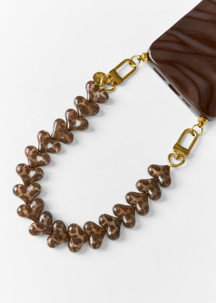 • De Sofia telefoonkoord is goud en heeft hartjes bedels met panterprint. Je bevestigt het koord eenvoudig aan je telefoonhoesje met een kliksysteem.