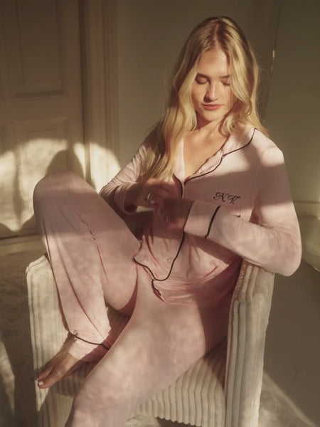 • Personalisiere diesen weichen Pyjama Soft Pink Long mit einer persönlichen Stickerei auf der Vorderseite. Die Farbe der Personalisierung bestimmst du selbst. Pyjamas sind nicht nur schön für dich selbst, sondern auch ein tolles Geschenk. Wir bieten die Möglichkeit, das Geschenk in einer luxuriösen Geschenkbox zu verpacken.