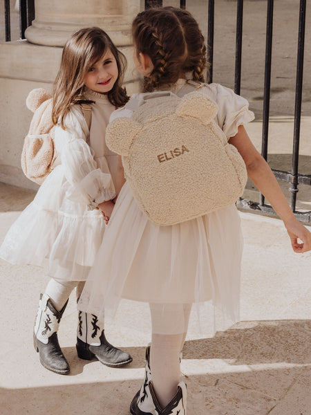 • Dieser personalisierte Teddy-Rucksack mit seinen niedlichen Teddy-Ohren vervollständigt das Outfit deines Kindes! Die praktische Seitentasche ermöglicht es, eine Flasche zu transportieren. Das große Fach ist perfekt für eine Brotdose für die Schule, für Spielzeug oder für alles, was die Kleinen in der Kita braucht! Die Schultergurte sind verstellbar, damit der Rucksack immer perfekt sitzt. Mache den Rucksack noch persönlicher, indem du ihn mit dem Namen deines Kindes versiehst!